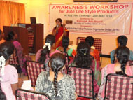 We have been allotted a Jute Service Centre at Madurai by National Jute Board, Ministry of Textiles, Govt. of India through which we are imparting training programmes in Jute products manufacturing for the past 3 years. After training we are providing marketing platforms to the beneficiaries to market their products and make them as entrepreneurs. Many of them running their own units successfully.